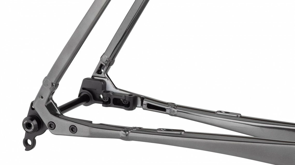 Les toutes nouvelles pattes coulissantes en flat-mount simplifient votre montage en singlespeed et la patte de dérailleur vous offre la possibilité d’installer des vitesses.