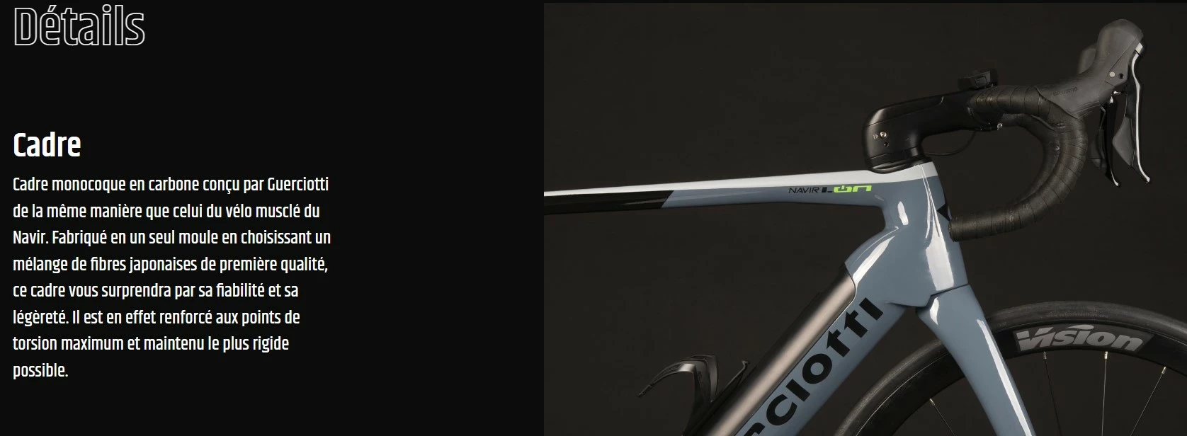 Cadre monocoque en carbone conçu par Guerciotti dans le même esprit que