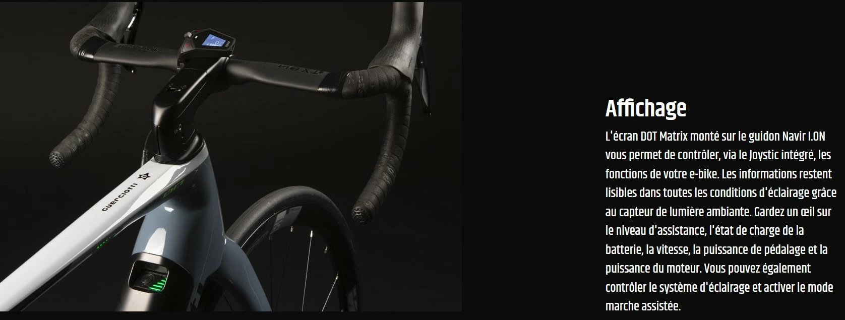 L’affichage DOT Matrix monté sur le guidon Navir I.ON vous permet