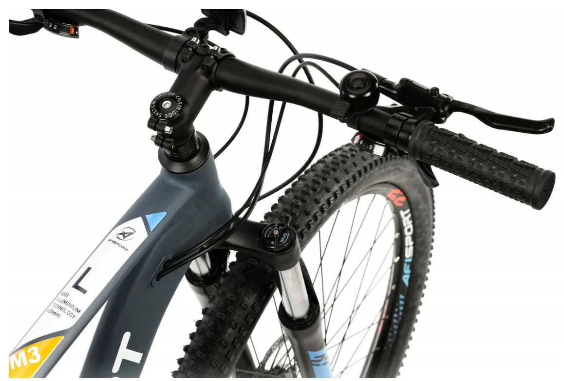 La dernière version du VTT AFISPORT, qui connaît un grand succès, est idéale pour ce large éventail d’utilisations. Avec des roues de 27,5 pouces et l’utilisation systématique de freins à disque sur les roues avant et arrière, le M3 se présente plus moderne et plus puissant que jamais. La nouvelle version à disque hydraulique du vélo classique est également convaincante en entrée de gamme, avec un confort de changement de vitesse à 21 vitesses, une fourche suspendue solide et un cadre en aluminium robuste. La position assise du M3 est à la fois confortable et sportive et offre un contrôle maximal aux débutants.